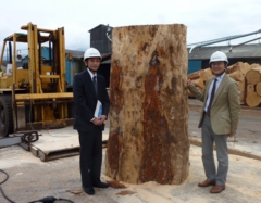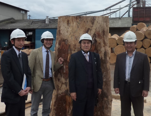 岐阜県、高山市にあるキタニさんの本社で、樅の木の家具の打ち合わせをしている中で、私はつい「樅の木のことを知らずして、樅の家具を作るのはどうかな…?」と、失礼かなと思いましたが口走ってしまいました…。ところが、さすがキタニさんです。会長、社長、工場長の3人が「ぜひとも樅の木の工程を、樅の聖地を見てみたい!」というお話しになり、今回の九州への研修となりました。