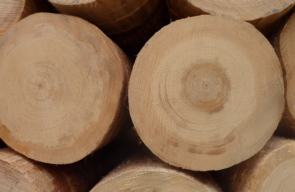 見上げるほどに積まれた樅の木